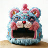 tar-Shaped Cat Bed , Fleece Lining Decorative Cutouts Light Blue for Cats